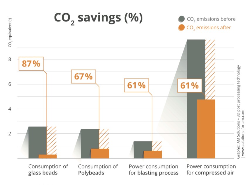 In total, the annual savings at FORMRISE amount to approximately € 35,000, with more than half attributed to the reduced compressed air consumption. Simultaneously, the CO₂ emissions of the post-processing process were reduced by more than 12 metric tons per year. “For the post-processing of SLS parts, AM Solutions offers a solution with the S1 that is absolutely unmatched in the market and has convinced us in every respect. It is clear here exactly what potential lies in the optimal alignment of the blasting process with the requirements of additive manufacturing, particularly in blasting media preparation. AM Solutions recognized and fully leveraged this potential – and in doing so, provided us with the opportunity to optimize our post-processing in ways we could not have previously imagined,” says Peter Spitzwieser, Managing Director of FORMRISE.