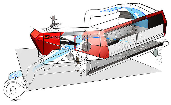 Proven advantages inherited from the previous AirStar technology include the downward angle in the integrated acceleration conveyor, which prevents heavy parts with a larger surface area from being carried into the light material fraction, and the shaftless separating drum as a measure against material jamming or winding between the drum and housing. The patented, automatic misalignment control in the acceleration belt ensures even more reliable belt misalignment correction thanks to an improved sensor and new algorithm.