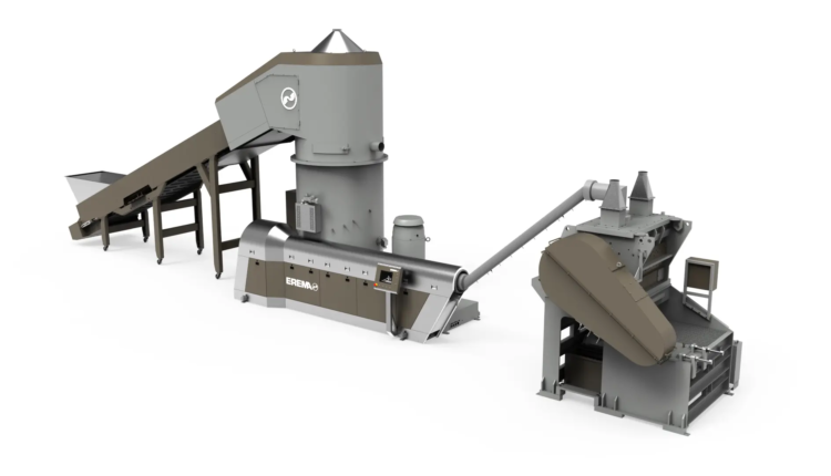 The AGGLOREMA family of machines, a novel recycling system designed specifically for processing highly contaminated post-consumer trash, will be introduced by EREMA in 2025. Large-scale processing of film rejects from sorting systems with high levels of variable moisture results in agglomerates with a high bulk density, which are perfect as feedstock for chemical recycling and other uses.